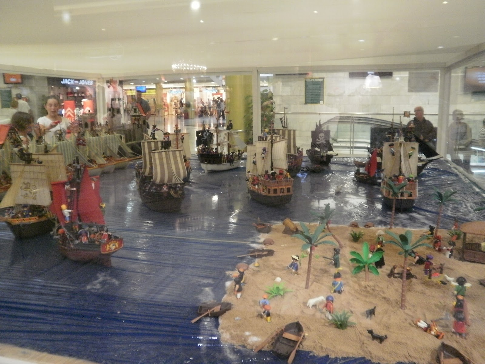 ¡Por cierto! La playa a está a dos pasos y hoy hacía un día perfecto para hacer las dos cosas. Un día de paya con bañito en el mar, paseo de tiendas y exposición de playmobil...